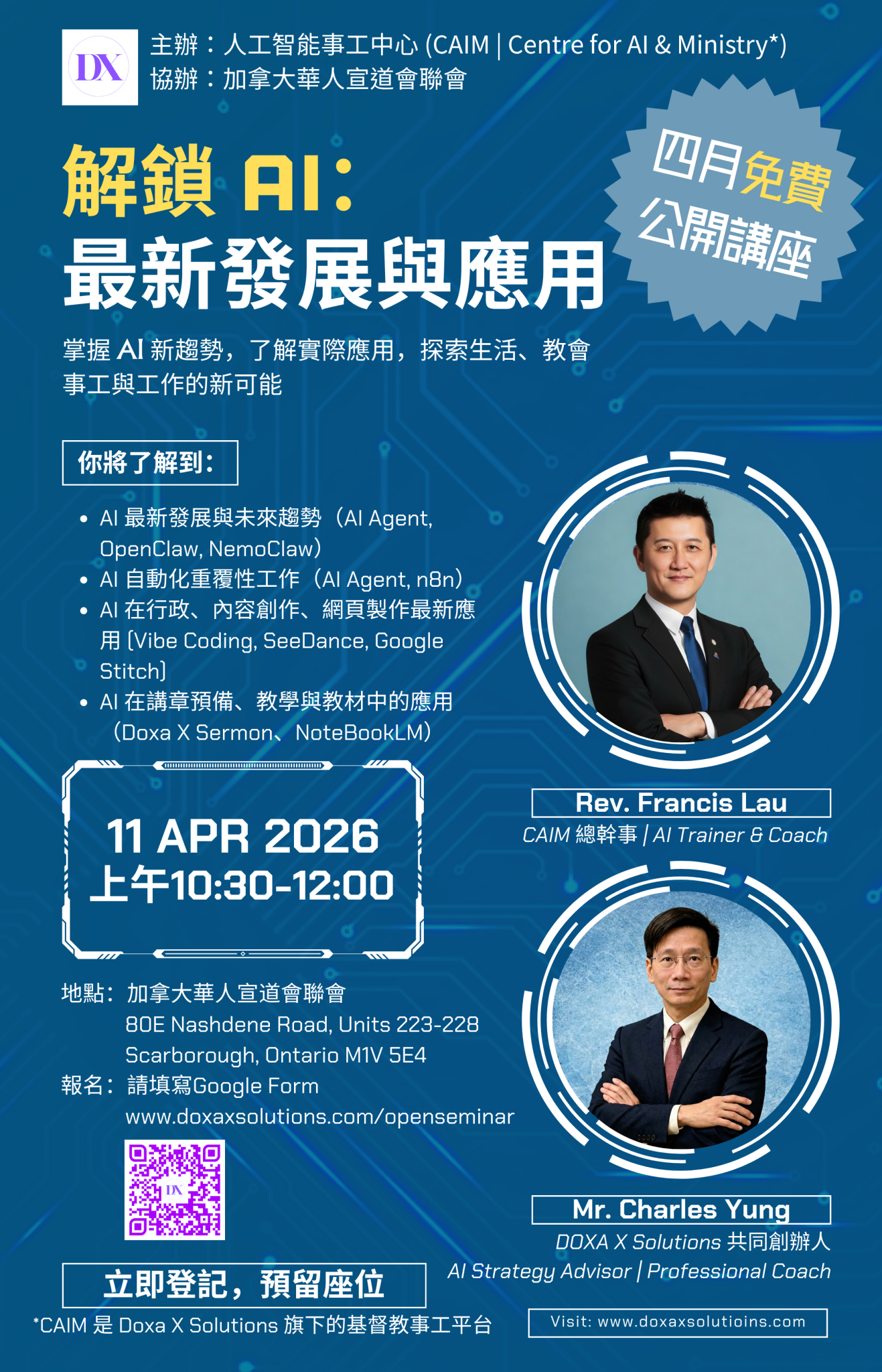 幫助牧者及教會領袖全面了解AI最新發展,包括AI繪圖、翻譯、影片、音樂、行政及辦公室自動化系統等;認識AI神學及倫理之基礎。另示範DX Sermon如何協助使用者撰寫深入研究及具深度反省的材料。